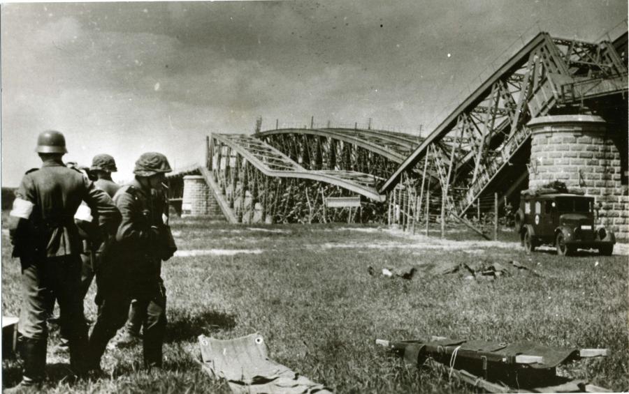 Lange colonnes voetvolk, militaire auto’s, vrachtwagens en door paarden getrokken artillerie zetten zich rond 3.50 uur vanuit Anholt, Emmerik en Elten in beweging richting de IJssel. Ondertussen vulde de lucht zich met stromen jachtvliegtuigen, bommenwerpers en transportvliegtuigen. “Flugzeuge wie Biene haben wir!”, riep een trotse Duitse soldaat, terwijl overal aan de grens Nederlandse militairen zich aan de overmacht overgaven.