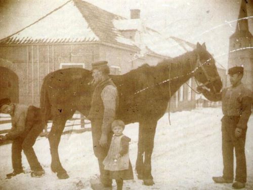 Gelukkig hebben ze de bruine merrie laten staan. Een officier, zelf boer, begreep ook wel dat het paard niet gemist kan worden. Ook de meeste koeien zijn gevorderd. Het is akelig leeg in de stallen. Het inspannen gaat snel. Binnen 10 minuten staat het dier in de dresseerkar, een klein karretje op twee wielen waar je van achteren opstapt met aan weerskanten twee zitplaatsen. Tot slot pakt Bernd een paardendek en legt dat op de kar. Dan gaat de deur naar de bijkeuken open en brengt Riet, de meid, een tas met doeken, een paar dekens en twee warmwaterkruiken naar de kar. Die kruiken zullen ze nodig hebben, want het is koud, net boven nul en er staat een straffe noordwestenwind.